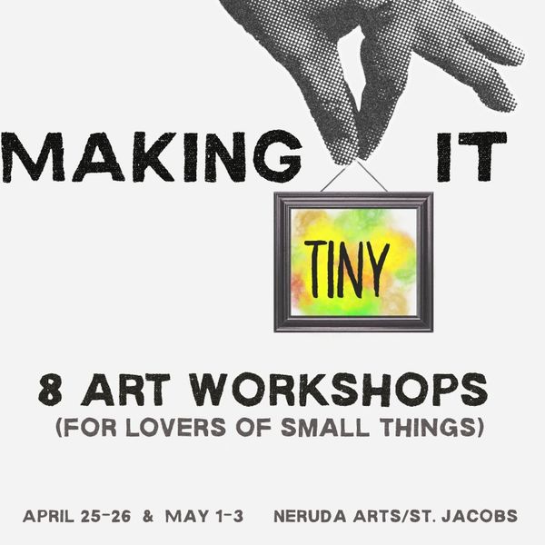 We are a group of 15 talented (ahem, if we don't say so ourselves) women artists who got together at the behest of Isabel Cisterna, Director of Neruda Arts, a not-for-profit arts and cultural centre in St. Jacobs. Our gallery abode is SUPER tiny, which got us into this tiny, adorable mess of ideation and art making. We are all on a path of artistic growth and have a bit of a penchant for tiny stuff too. We have a list of 14 values which we can send to you if you want. But suffice to say, we are highly committed to artistic growth opportunities, our mission, extraordinary ideas and community collaboration. We are excited to invite you along for this crazy (slightly unhinged?) ride.